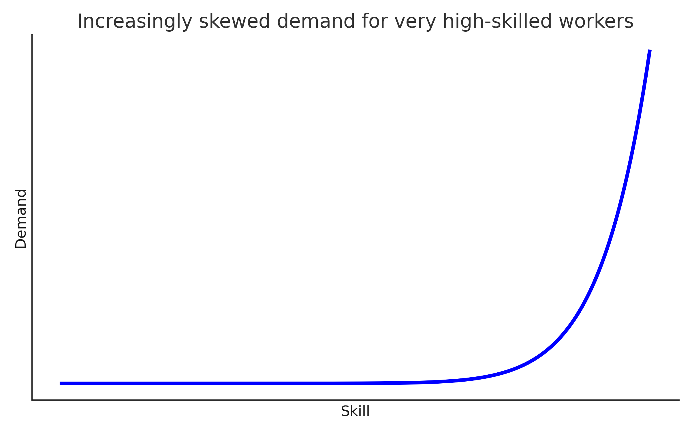 Economists like David Autor and Daron Acemoglu have studied the “polarized” effects of new technology on the labor force. Some technologies like automated grocery checkout stands or autonomous vehicles are “labor-substituting,” meaning they replace workers. But other kinds of technology are “labor-augmenting,” like surgical robots or Excel spreadsheets, making certain kinds of workers even more valuable. While it’s not clear how much AI agents will really replace human workers for binary tasks (except driving and delivery), it is likely that rapid AI progress on nonbinary tasks will increase demand for the very high-end of human expertise and judgment.